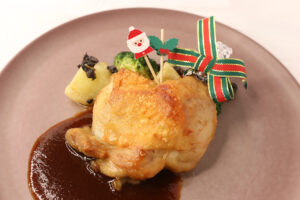 2025年12月1日(月)〜12月25日(木)までの期間、ランチではX'mas限定 スペシャルメインディッシュとして、『骨付き鶏もも肉のグリエ 〜ドミグラスソース〜』を通常のメインディッシュと同じ3,500円(税込)でご提供いたします!