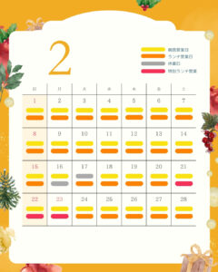 2026年2月1日(日)〜2月28日(土)の期間につきまして、レストラン「fine dining山科」では下記の通り営業いたします!